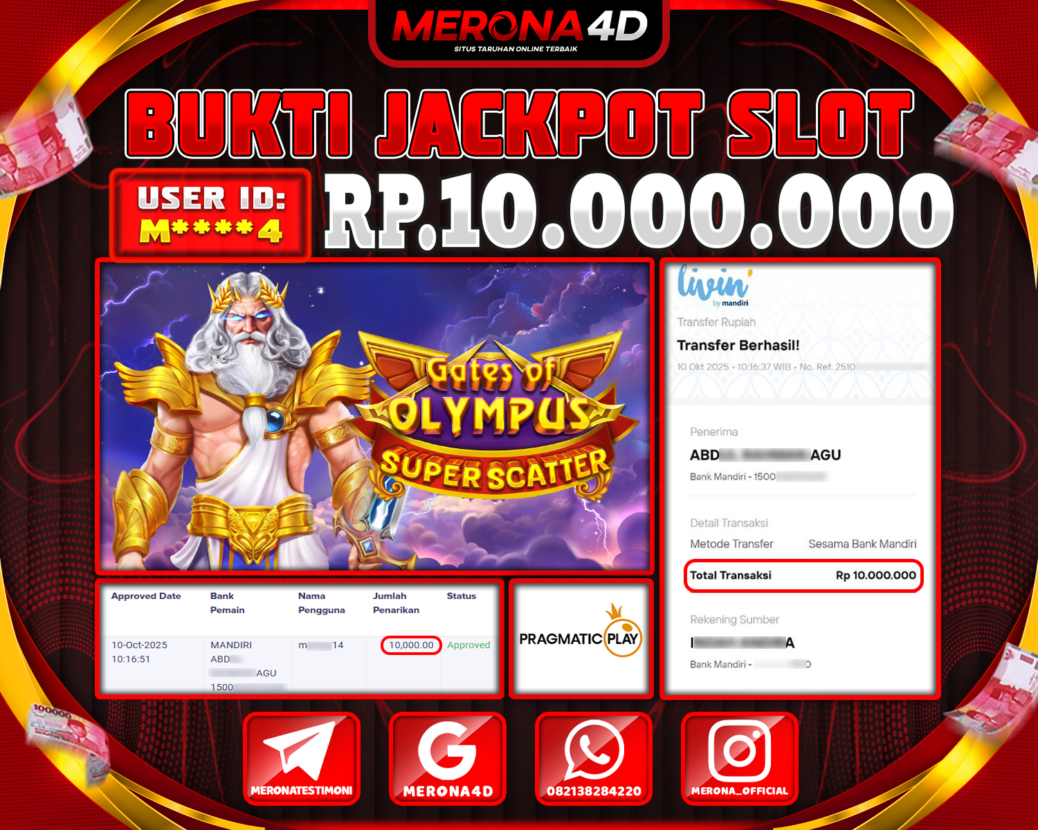 Selamat Kepada Member MERONA4D Mβ­‘οΏ½***οΏ½β­‘4 Telah Jackpot Di GATES OF OLYMPUS SUPER SCATTER
