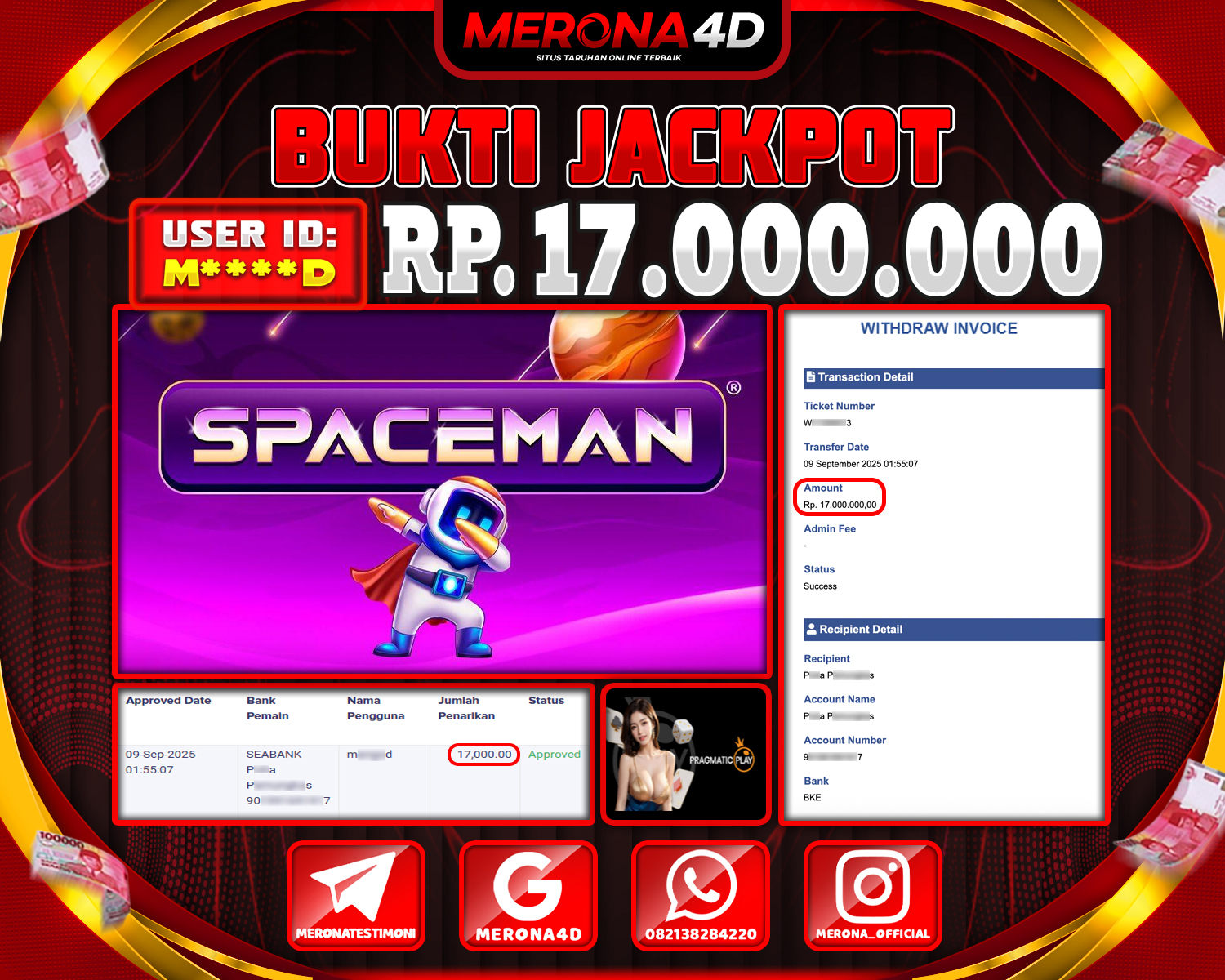 Selamat Kepada Member MERONA4D M****D Telah Jackpot Di SPACEMAN