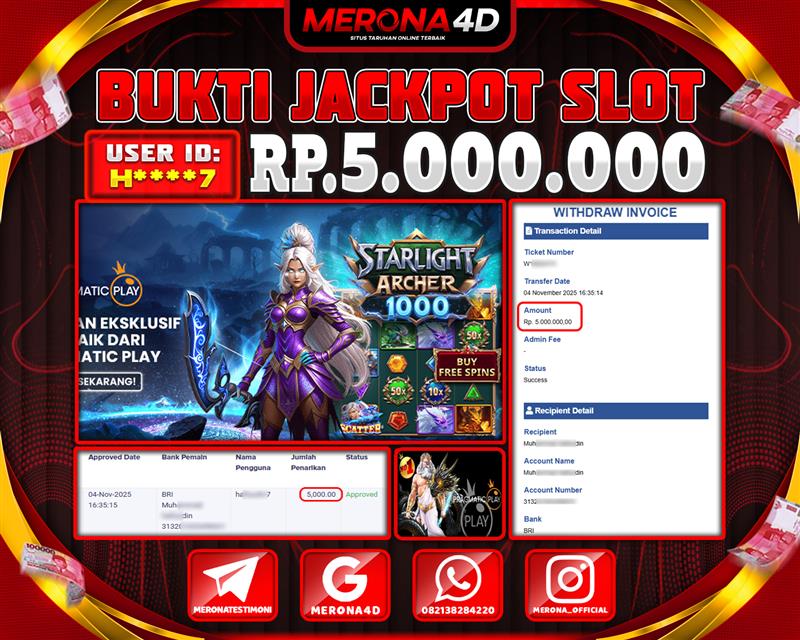 Selamat Kepada Member MERONA4D H*****7 Telah Jackpot Di STARLIGHT ARCHER 1000