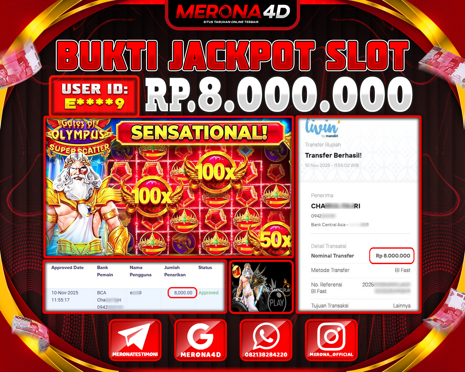 Selamat Kepada Member MERONA4D Eβ­‘οΏ½***οΏ½οΏ½9 Telah Jackpot Di GATES OF OLYMPUS SUPER SCATTER