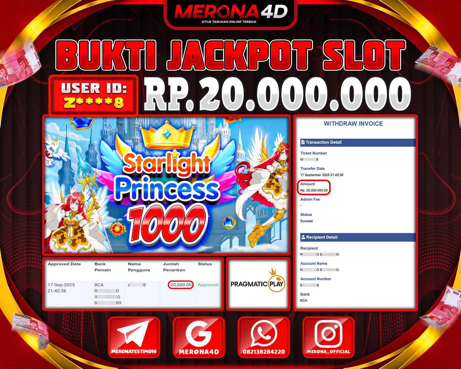 Selamat Kepada Member MERONA4D Z****8 Telah Jackpot Di STARLIGHT PRINCESS 1000