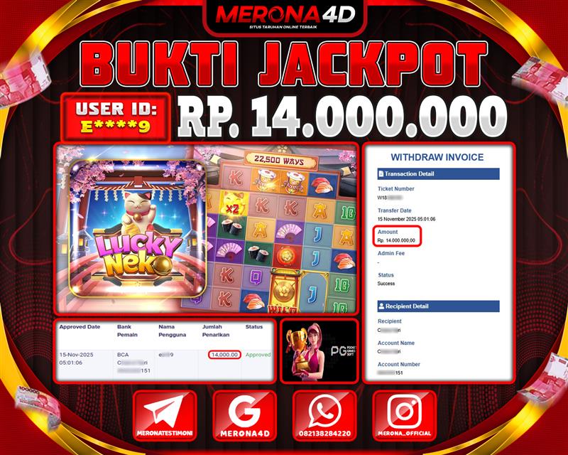 Selamat Kepada Member MERONA4D E*****9 Telah Jackpot Di LUCKY NEKO