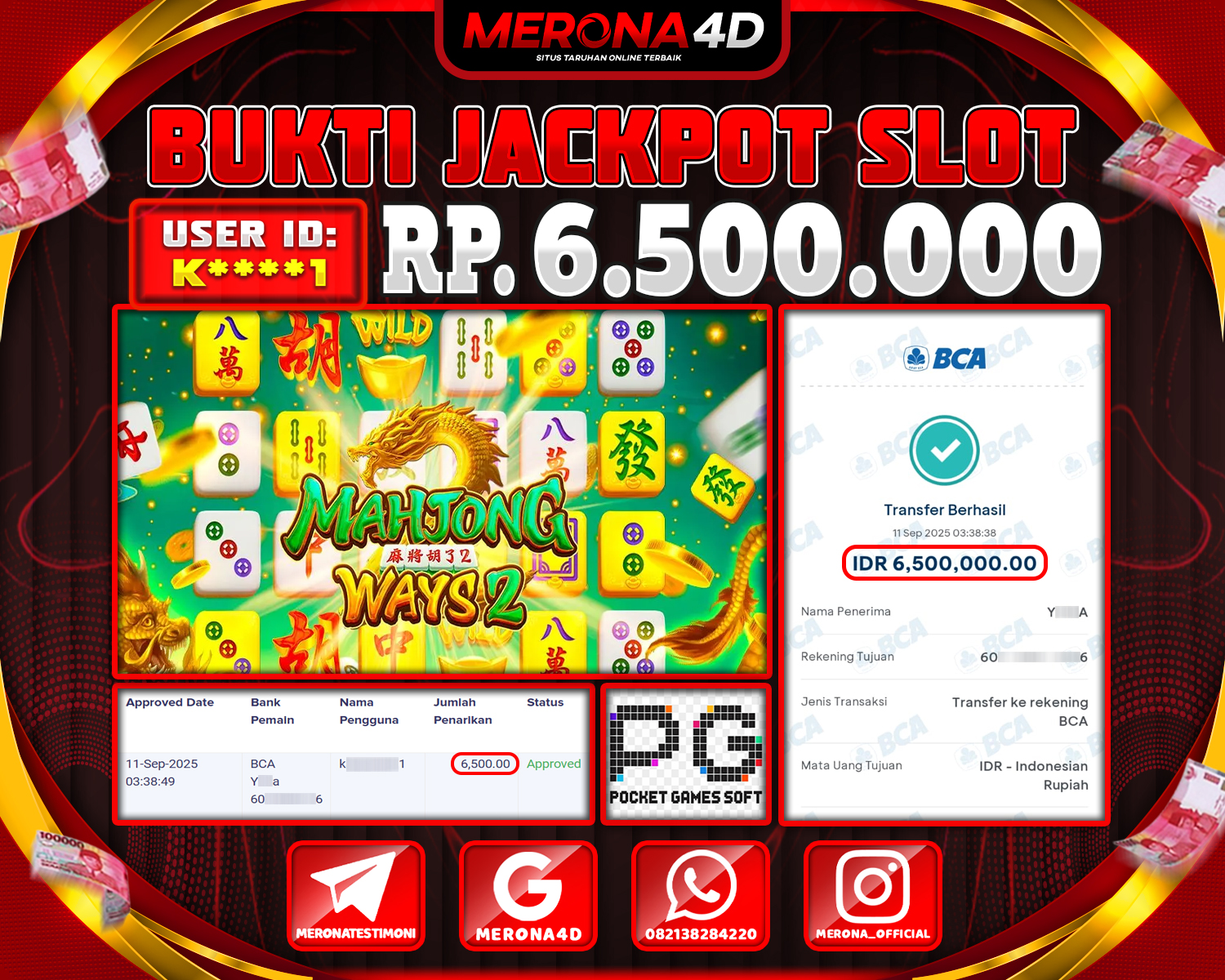 Selamat Kepada Member MERONA4D K****1 Telah Jackpot Di MAHJONG WAYS 2