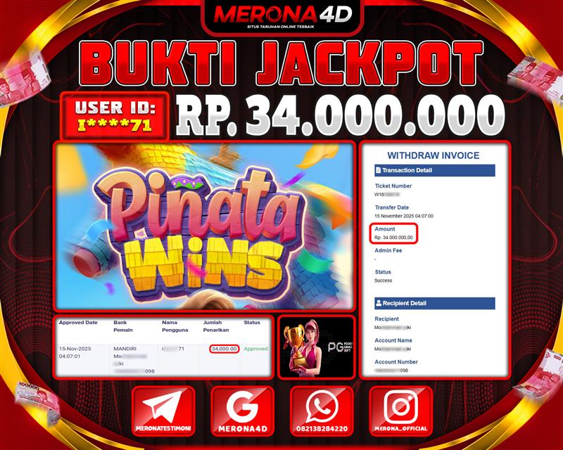 Selamat Kepada Member MERONA4D I*****71 Telah Jackpot Di PINATA WINS