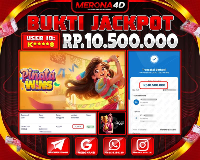 Selamat Kepada Member MERONA4D K*****8 Telah Jackpot Di PINATA WINS