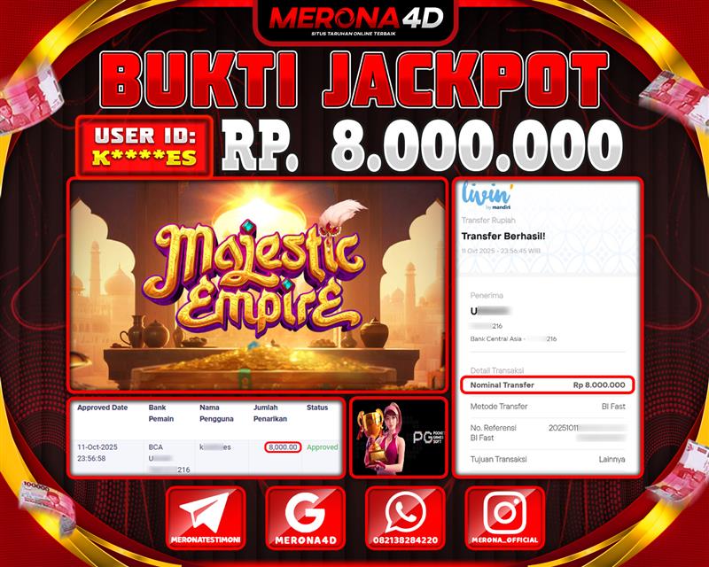 Selamat Kepada Member MERONA4D K*****ES Telah Jackpot Di MAJESTIC EMPIRE
