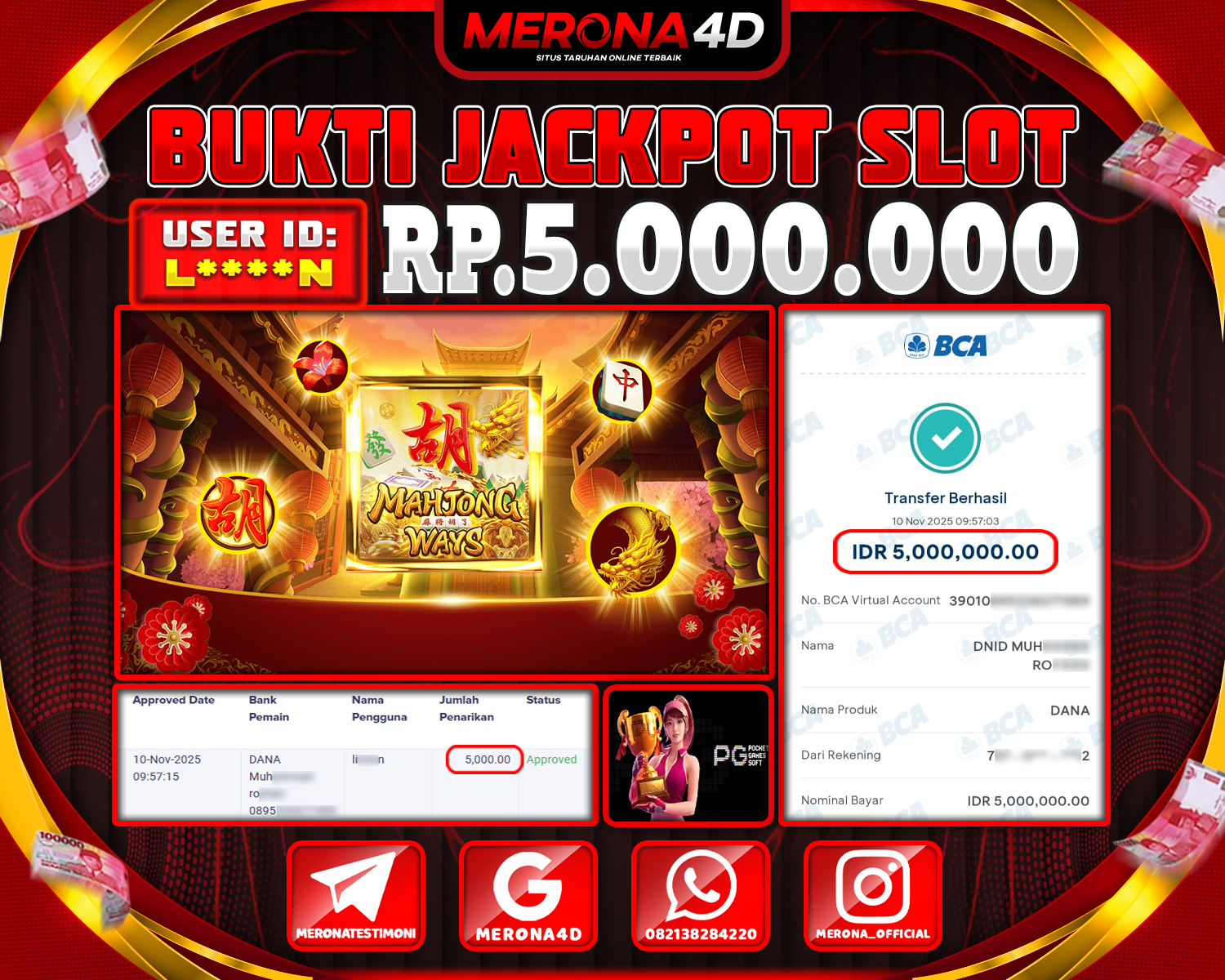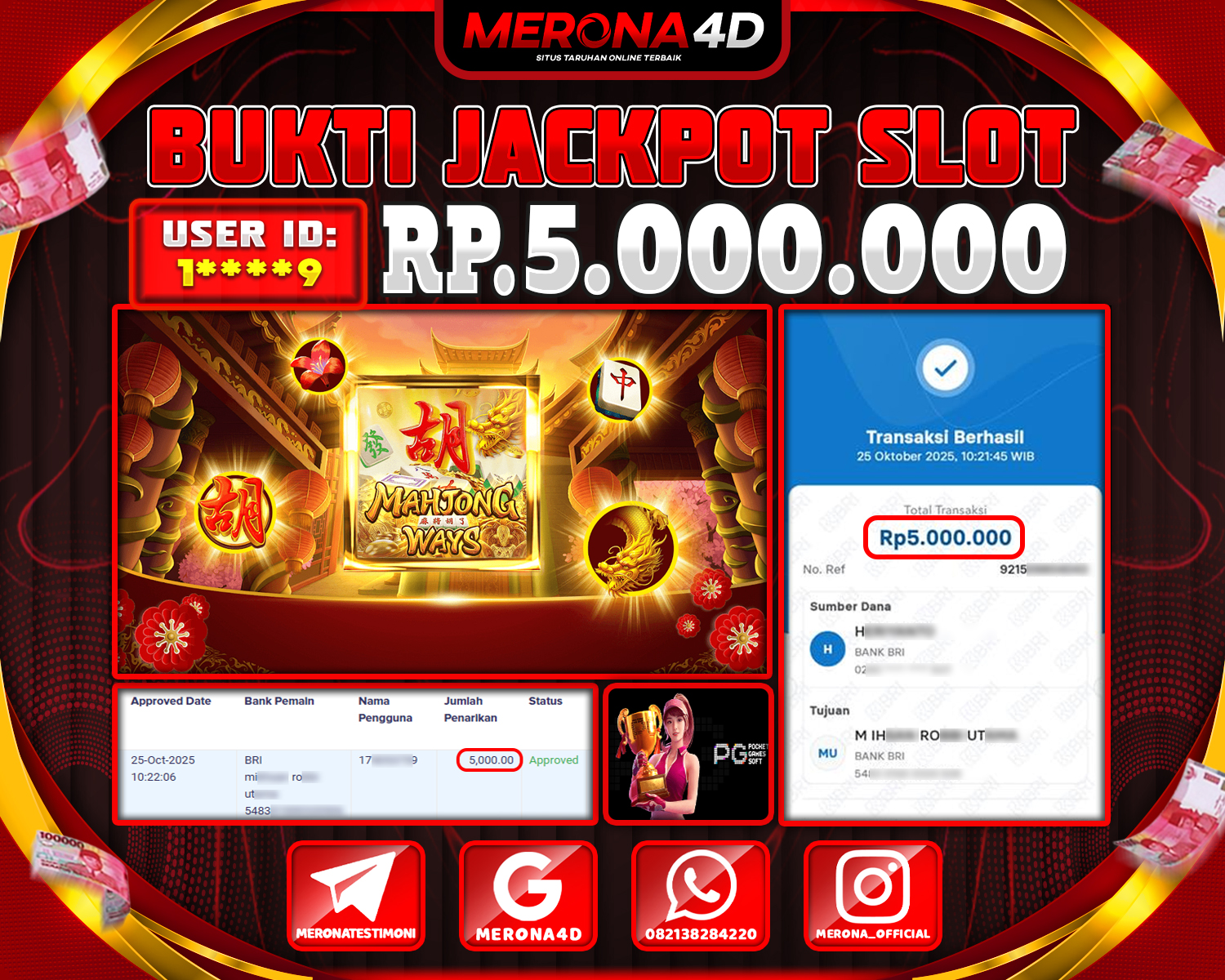 Selamat Kepada Member MERONA4D 1β­‘οΏ½***οΏ½β­‘9 Telah Jackpot Di MAHJONG WAYS