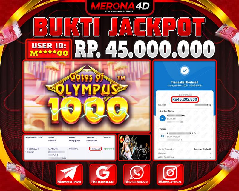 Selamat Kepada Member MERONA4D M*****0 Telah Jackpot Di GATES OF OLYMPUS 1000