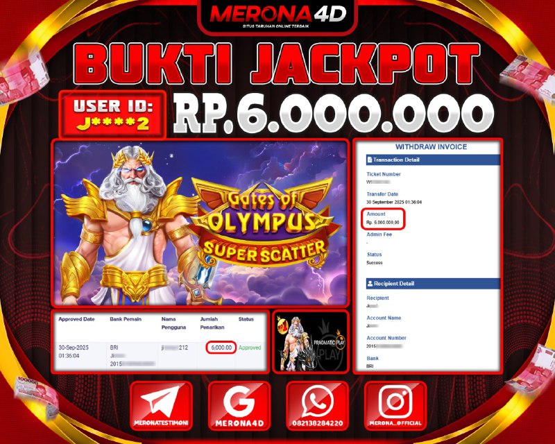 Selamat Kepada Member MERONA4D W*****3 Telah Jackpot Di GATES OF OLYMPUS SUPER SCATTER