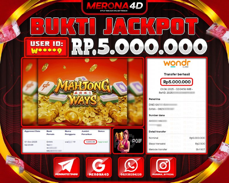 Selamat Kepada Member MERONA4D Wβ­‘οΏ½***οΏ½β­‘9 Telah Jackpot Di MAHJONG WAYS