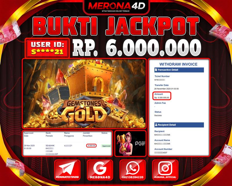 Selamat Kepada Member MERONA4D S*****21 Telah Jackpot Di GEMSTONES GOLD