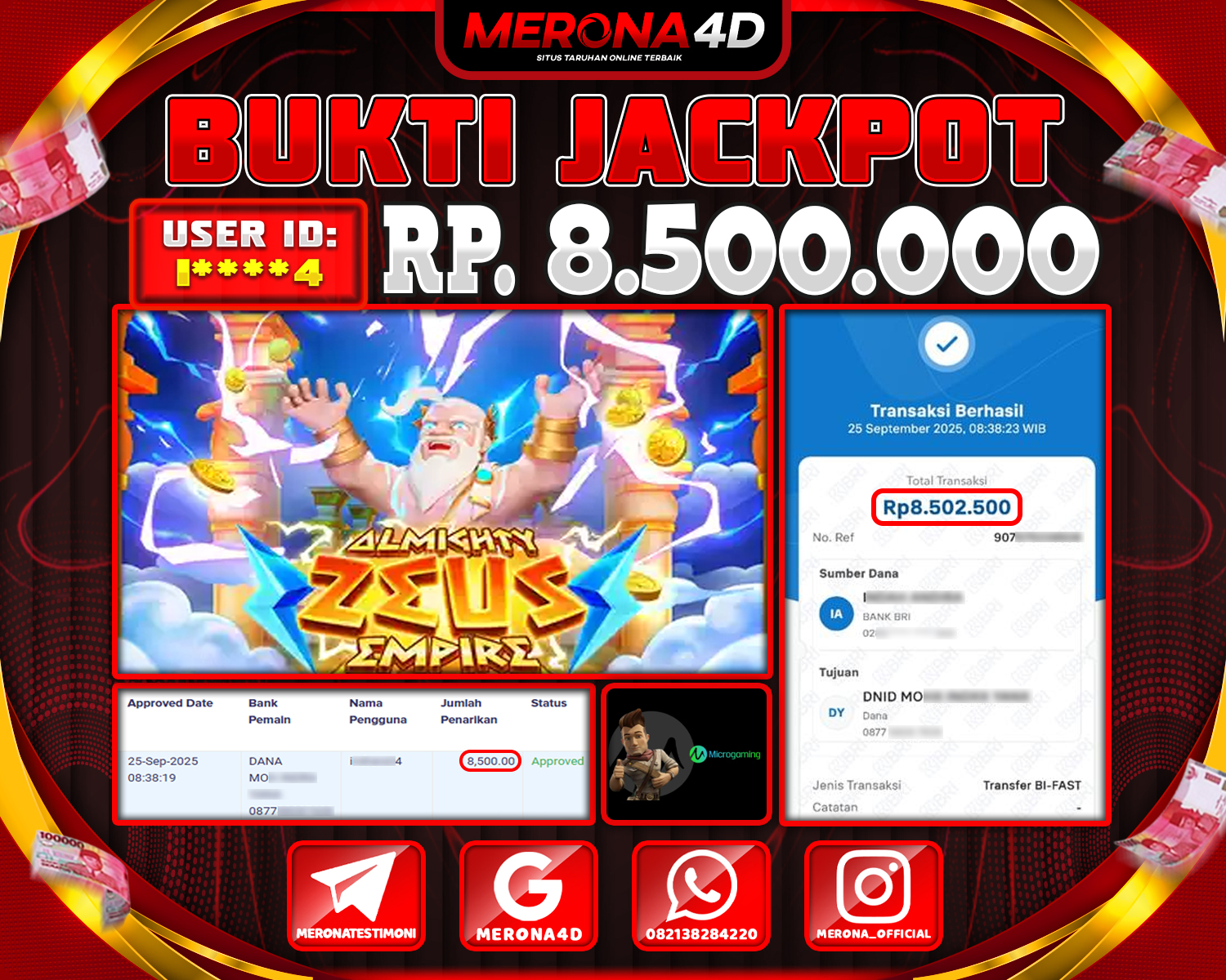 Selamat Kepada Member MERONA4D I**** Telah Jackpot Di ALMIGHTY ZEUS EMPIRE