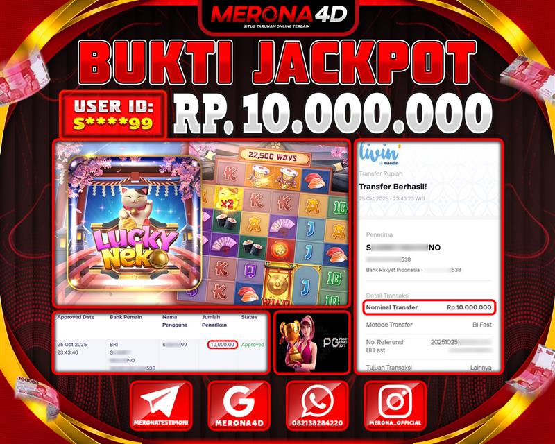 Selamat Kepada Member MERONA4D Aβ­‘οΏ½***οΏ½β­‘8 Telah Jackpot Di LUCKY NEKO