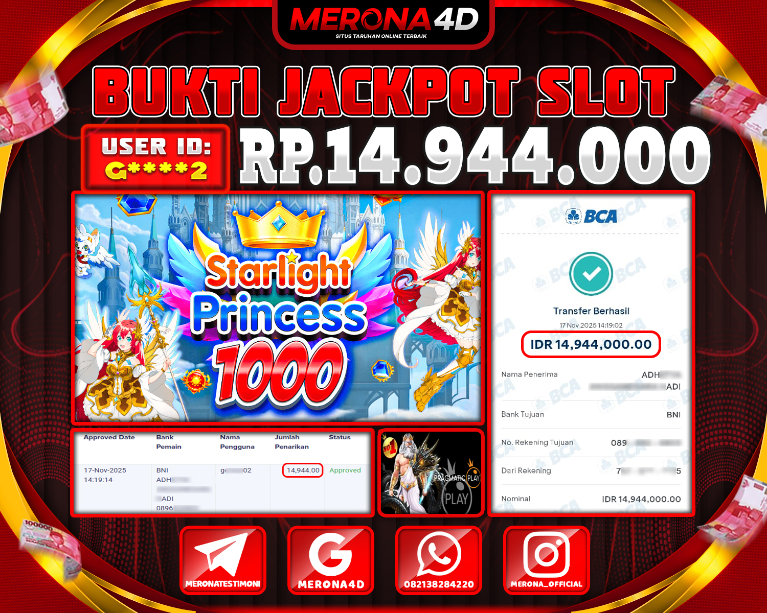 Selamat Kepada Member MERONA4D Gβ­‘οΏ½***οΏ½β­‘2 Telah Jackpot Di STARLIGHT PRINCESS 1000
