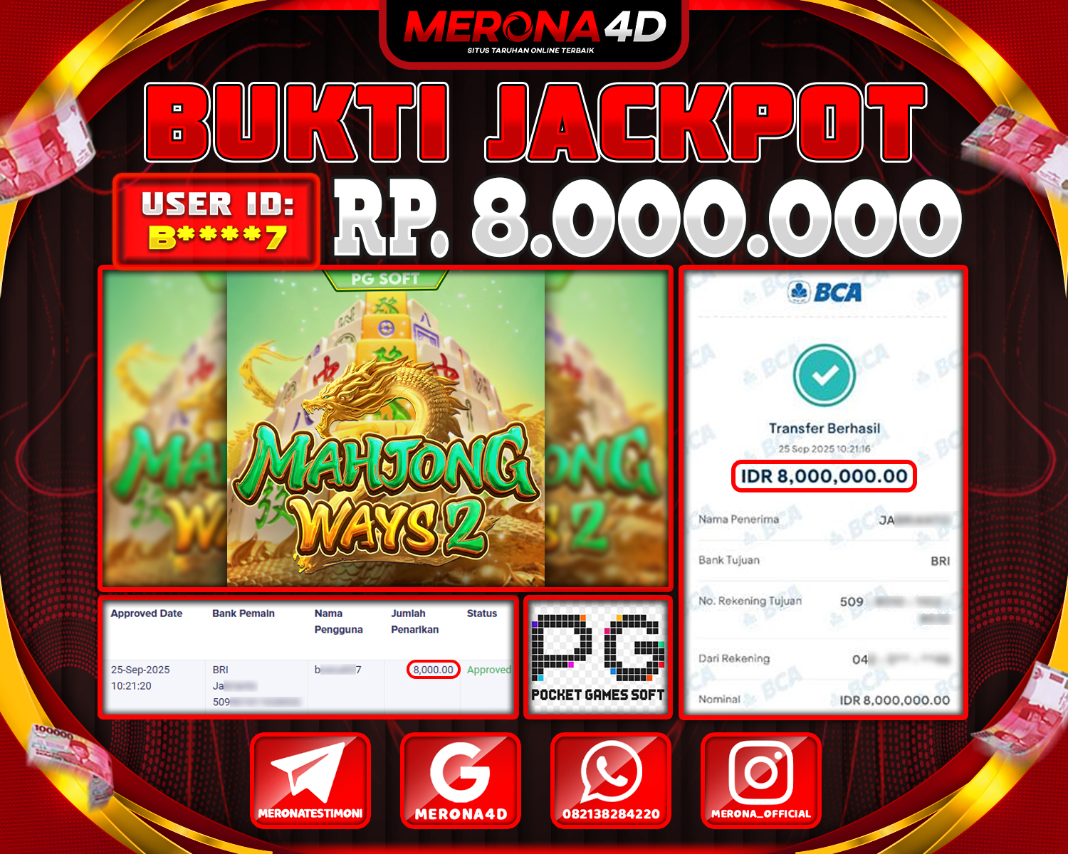 Selamat Kepada Member MERONA4D B**** Telah Jackpot Di MAHJONG WAYS 2