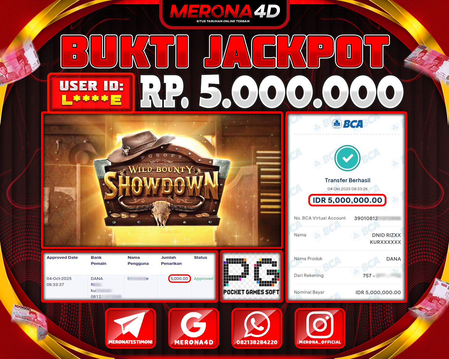 Selamat Kepada Member MERONA4D L**** Telah Jackpot Di WILD BOUNTY SHOWDOWN