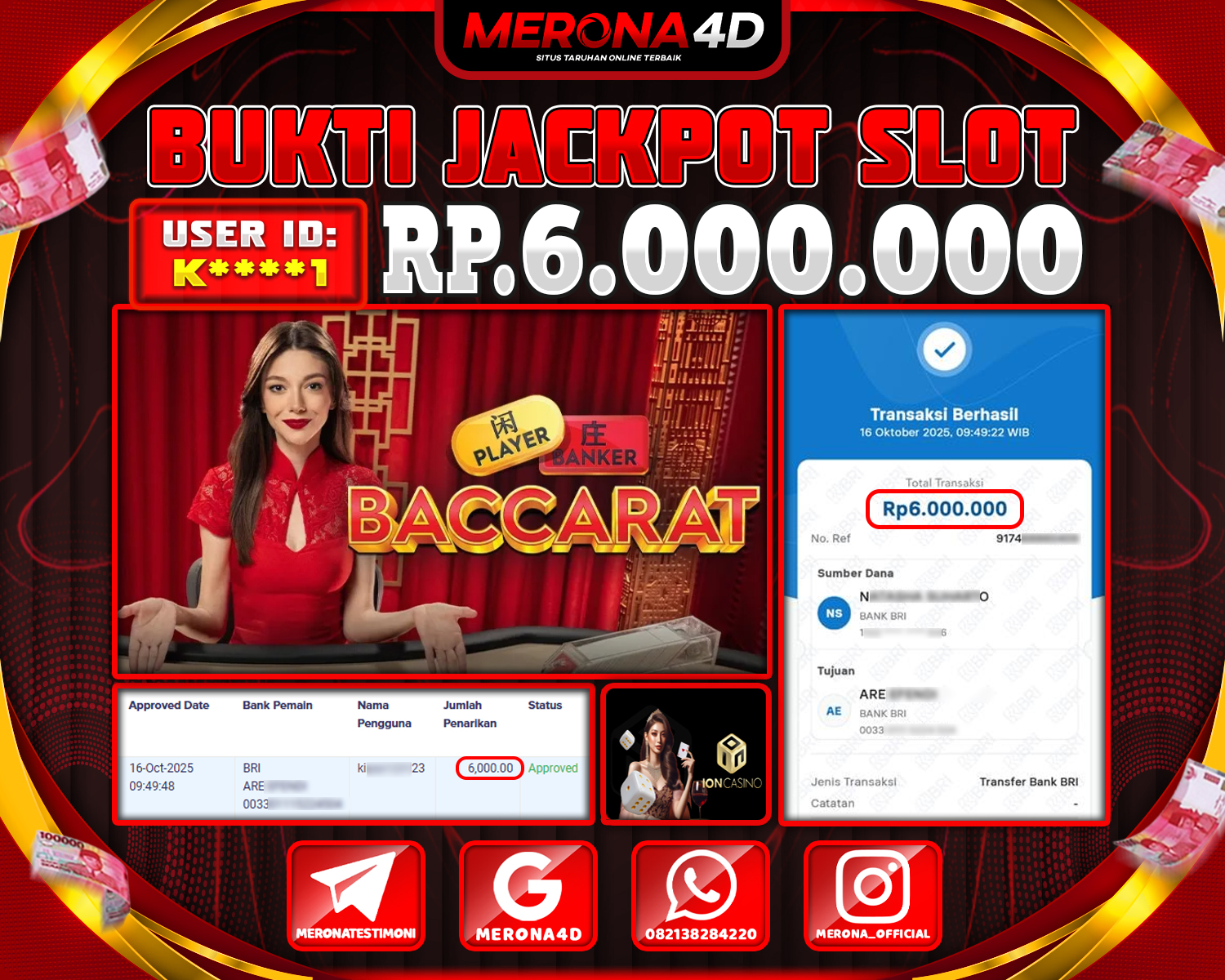 Selamat Kepada Member MERONA4D Kβ­‘οΏ½***οΏ½β­‘3 Telah Jackpot Di BACCARAT