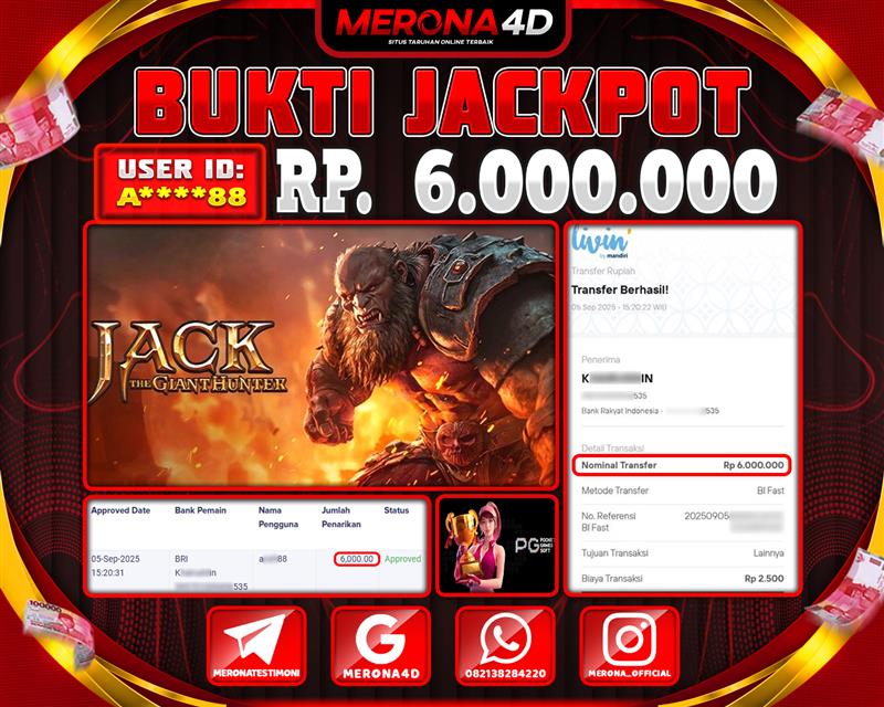 Selamat Kepada Member MERONA4D A*****88 Telah Jackpot Di JACK THE GIANT HUNTER