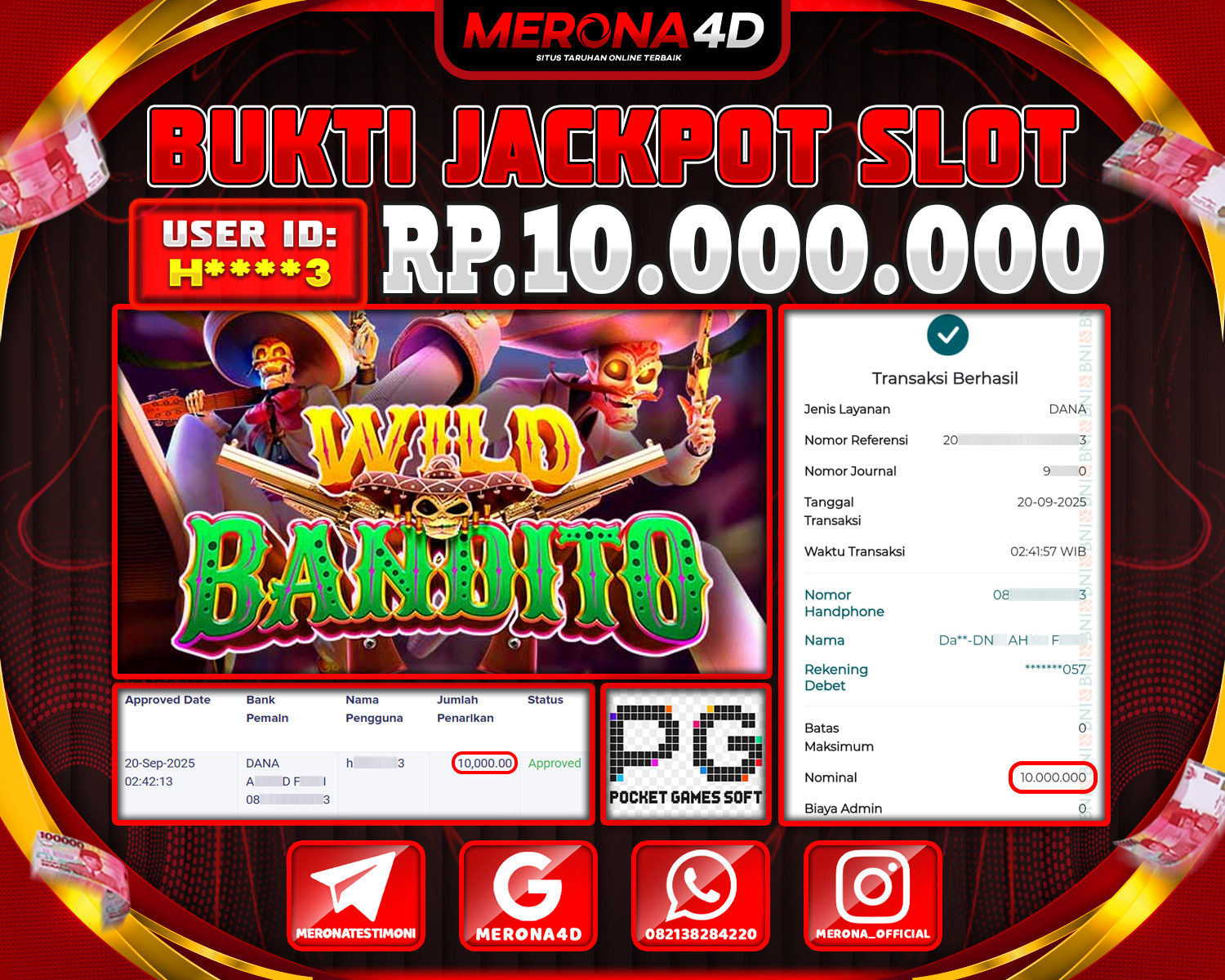 Selamat Kepada Member MERONA4D H****3 Telah Jackpot Di WILD BANDITO