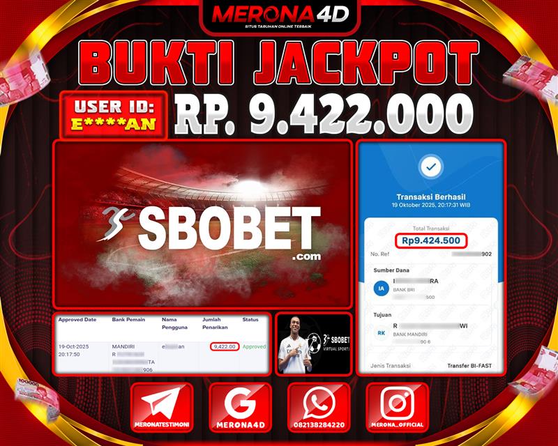 Selamat Kepada Member MERONA4D E*****AN Telah Jackpot Di SBOSPORTS