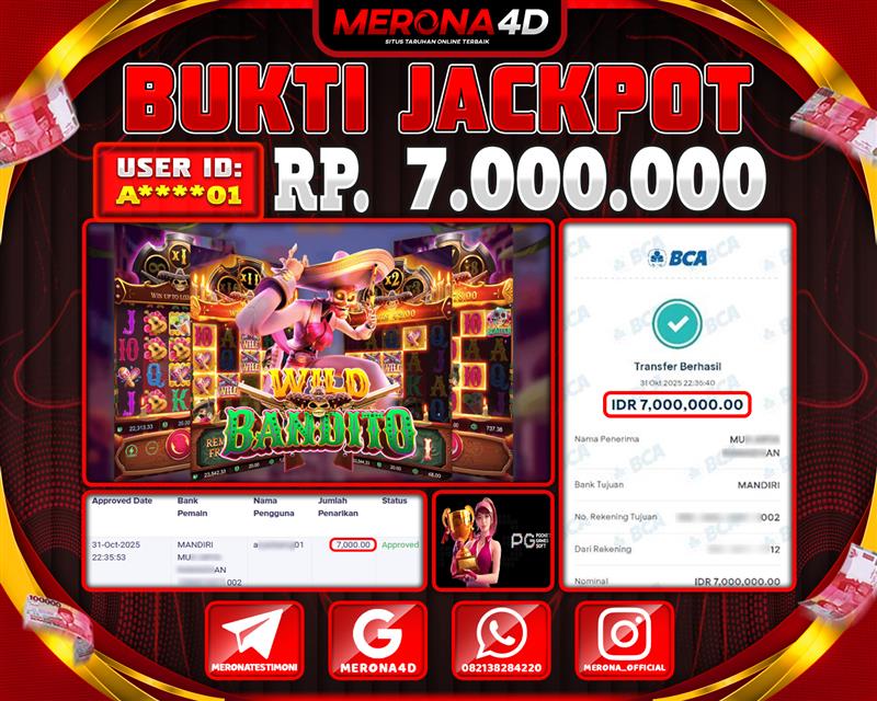 Selamat Kepada Member MERONA4D A*****01 Telah Jackpot Di WILD BANDITO