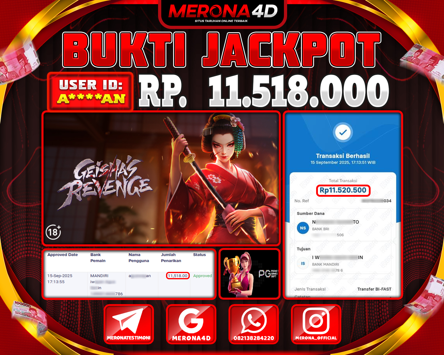 Selamat Kepada Member MERONA4D A*****N Telah Jackpot Di GEISHA'S REVENGE