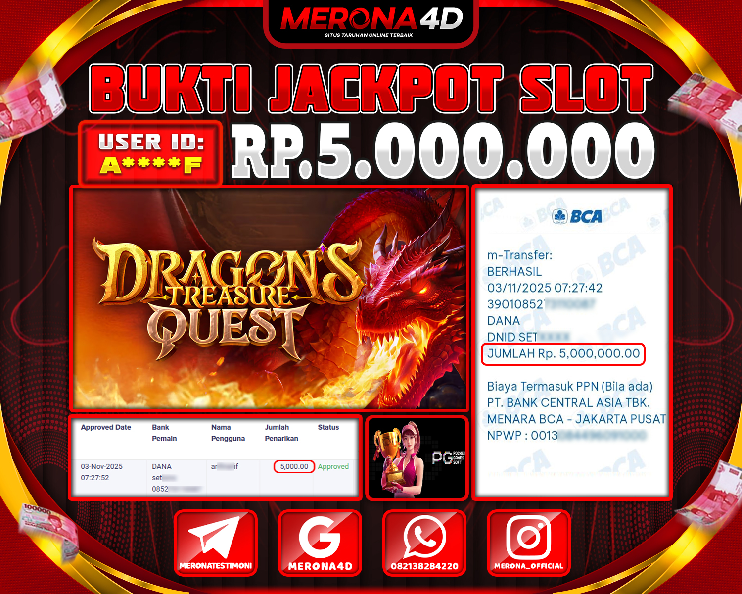 Selamat Kepada Member MERONA4D Aβ­‘οΏ½***οΏ½β­‘F Telah Jackpot Di DRAGON'S TREASURE QUEST