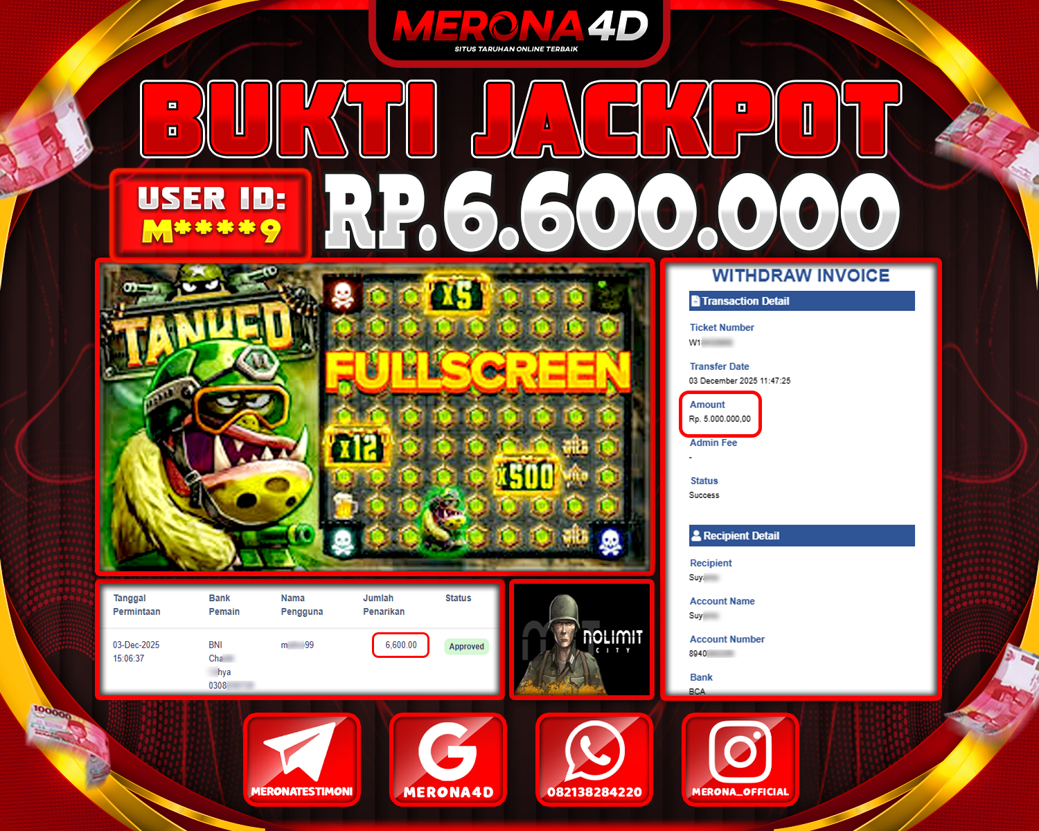 Selamat Kepada Member MERONA4D M**** Telah Jackpot Di TANKED