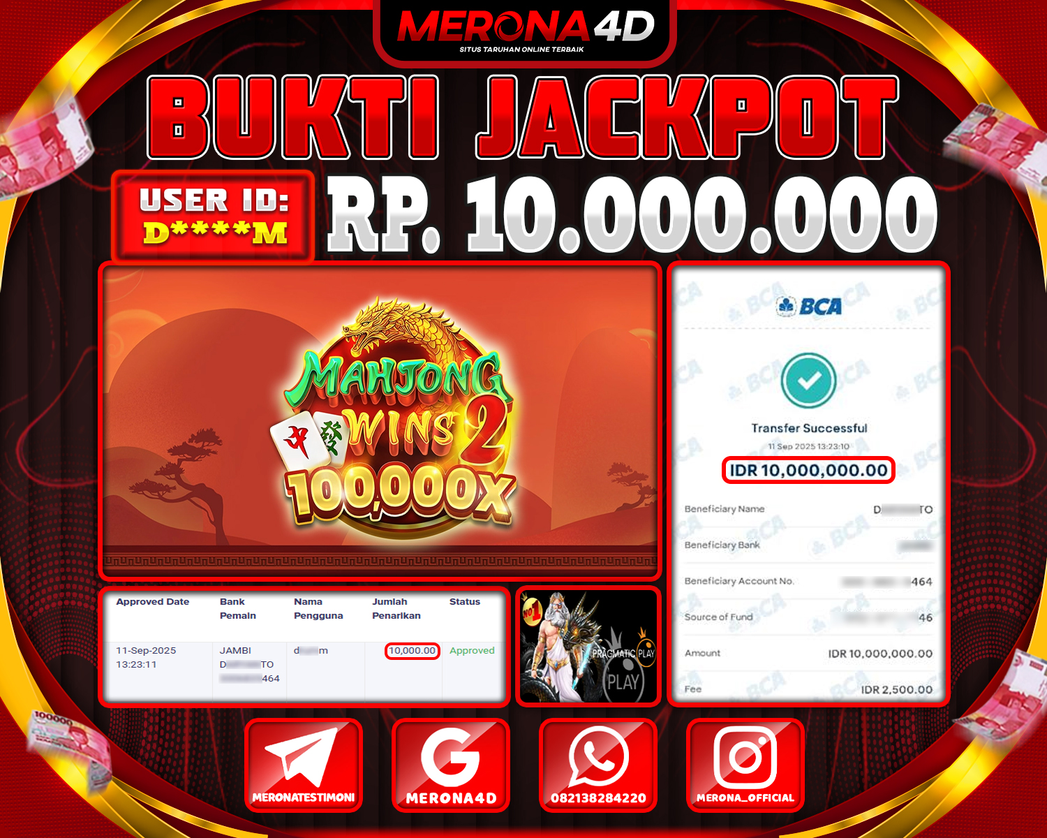 Selamat Kepada Member MERONA4D D****M Telah Jackpot Di MAHJONG WINS 2