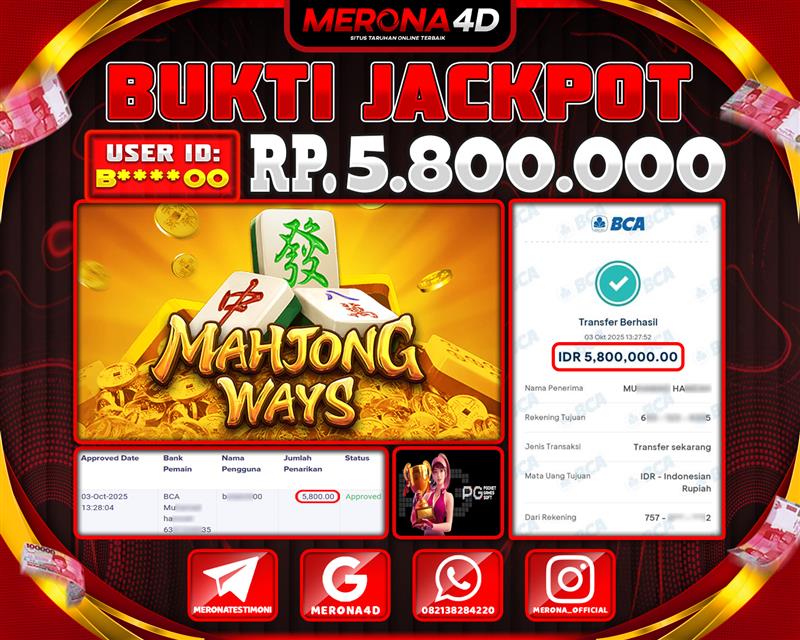 Selamat Kepada Member MERONA4D B****0 Telah Jackpot Di MAHJONG WAYS 1