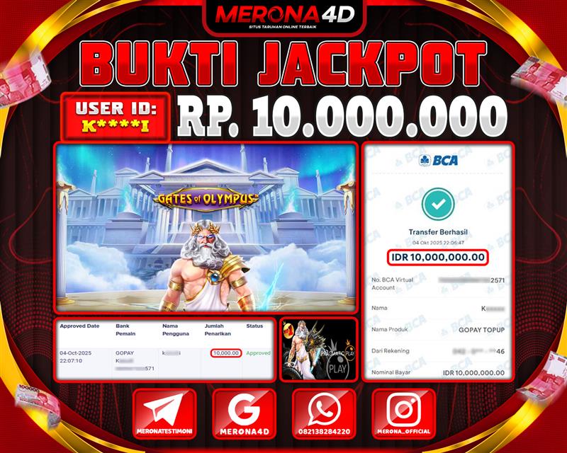 Selamat Kepada Member MERONA4D K*****I Telah Jackpot Di GATES OF OLYMPUS