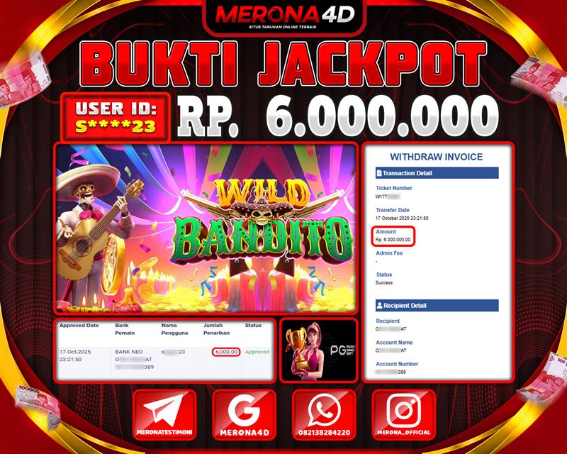 Selamat Kepada Member MERONA4D S*****23 Telah Jackpot Di WILD BANDITO