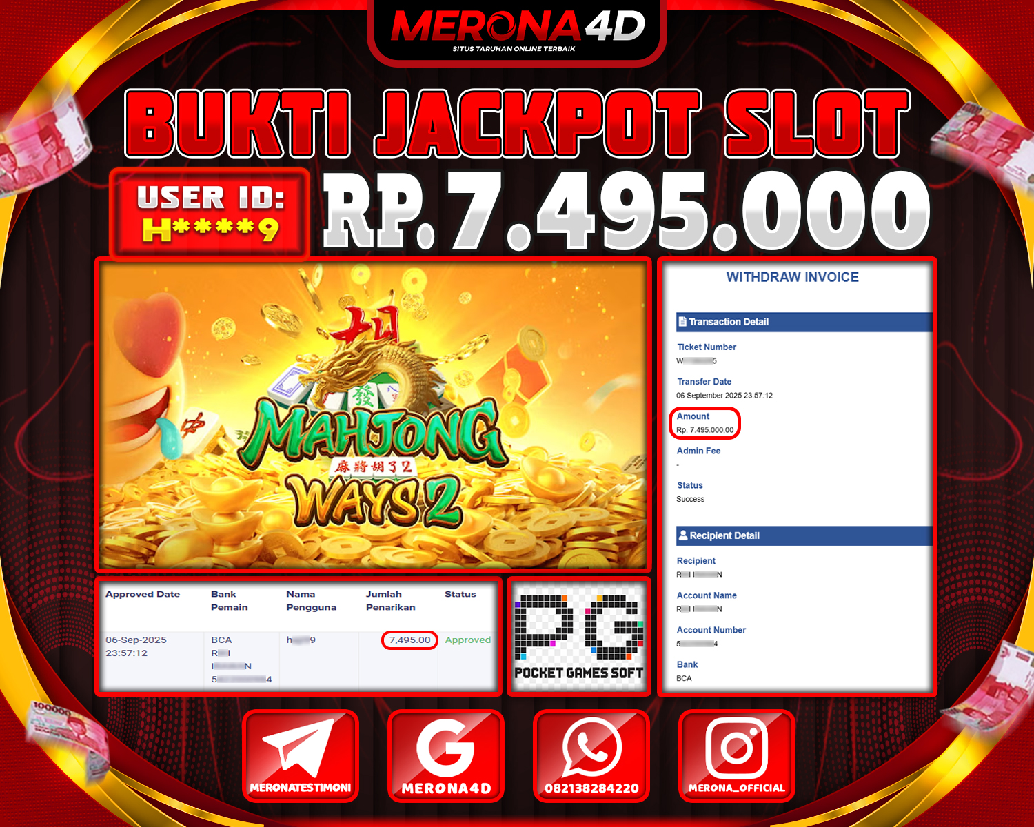 Selamat Kepada Member MERONA4D H****9 Telah Jackpot Di MAHJONG WAYS 2