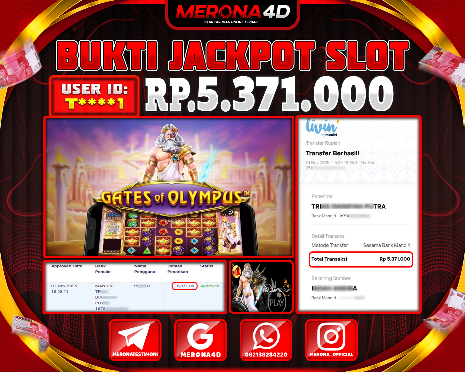 Selamat Kepada Member MERONA4D Tβ­‘οΏ½***οΏ½β­‘1 Telah Jackpot Di GATES OF OLYMPUS