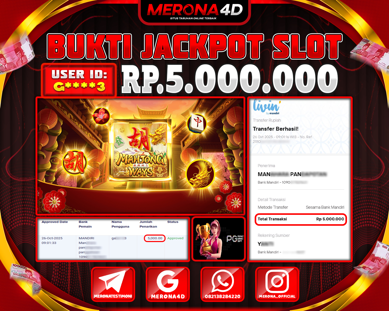 Selamat Kepada Member MERONA4D N****N Telah Jackpot Di MAHJONG WAYS