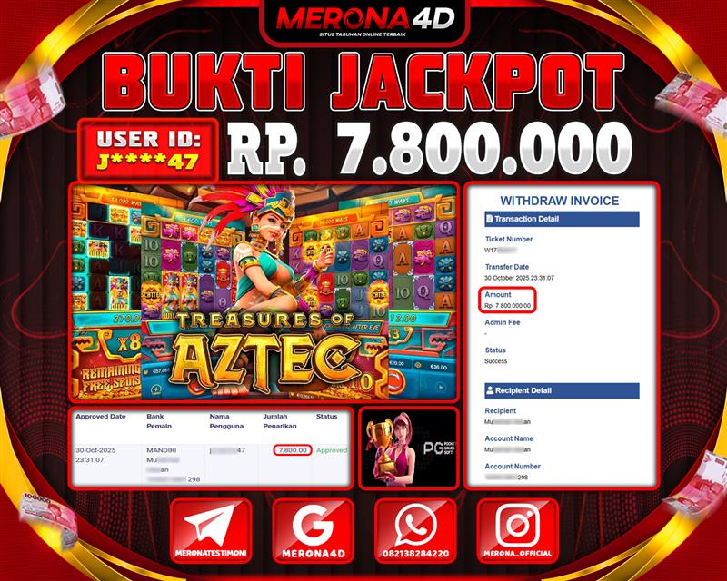 Selamat Kepada Member MERONA4D J*****47 Telah Jackpot Di TREASURE OF AZTEC