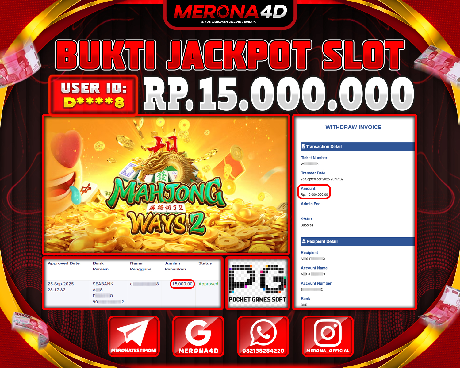 Selamat Kepada Member MERONA4D D****8 Telah Jackpot Di MAHJONG WAYS 2