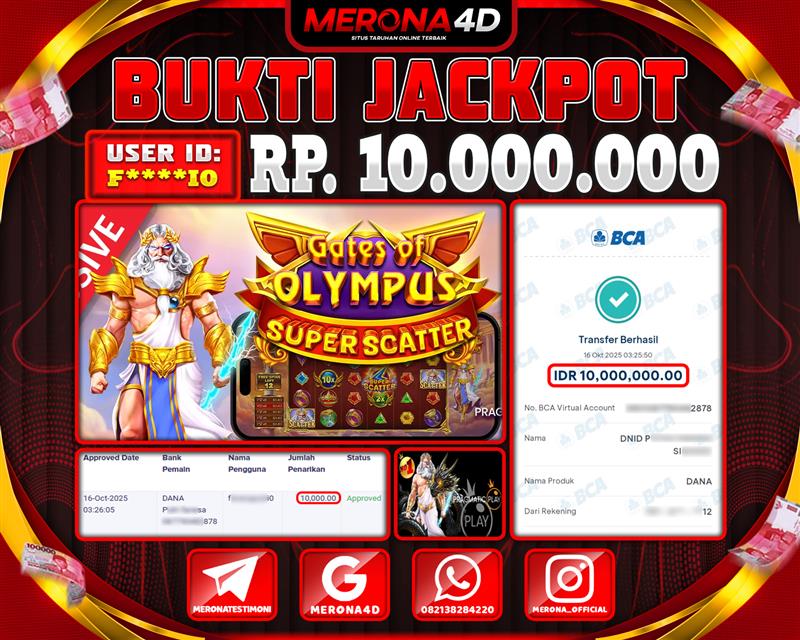 Selamat Kepada Member MERONA4D F*****10 Telah Jackpot Di GATES OF OLYMPUS SUPER SCATTER