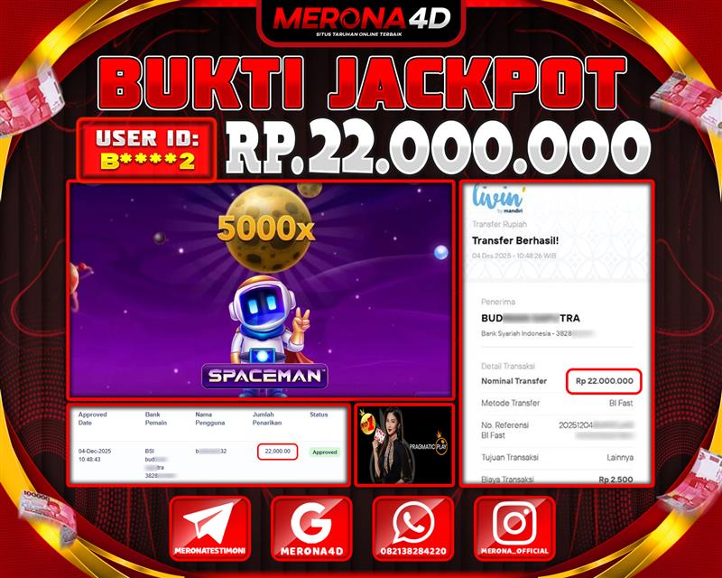Selamat Kepada Member MERONA4D B******2 Telah Jackpot Di SPACEMAN