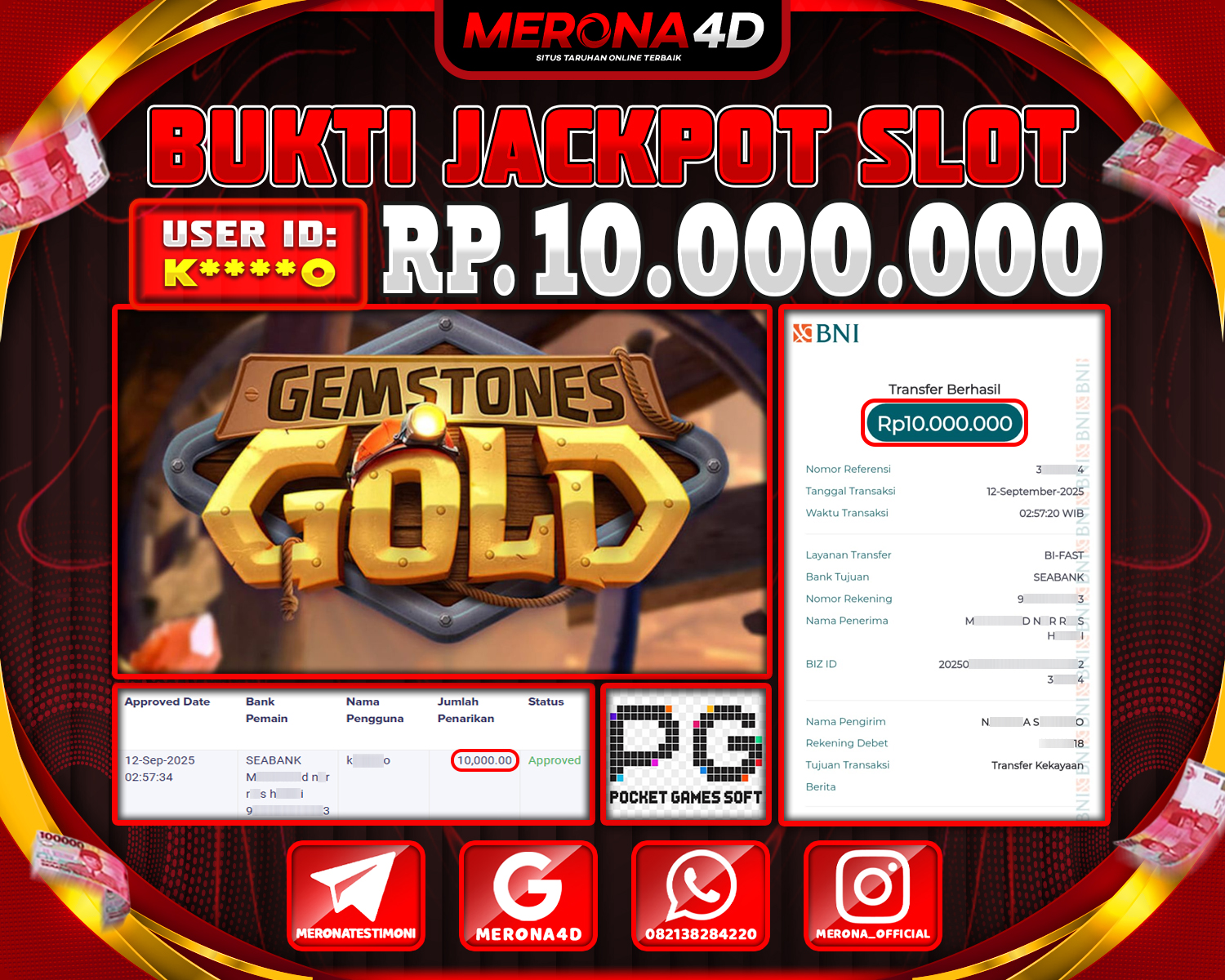 Selamat Kepada Member MERONA4D K****O Telah Jackpot Di GEMSTONES GOLD