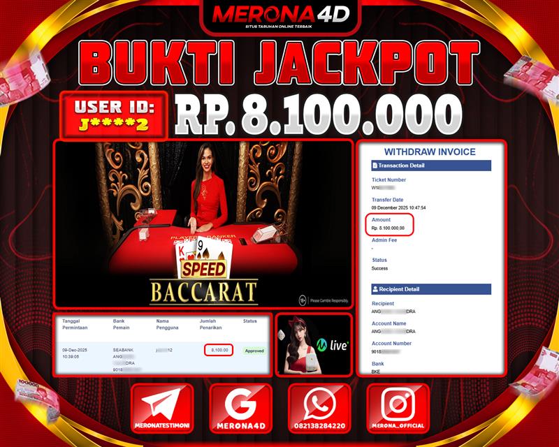 Selamat Kepada Member MERONA4D J*****2 Telah Jackpot Di SPEED BACCARAT