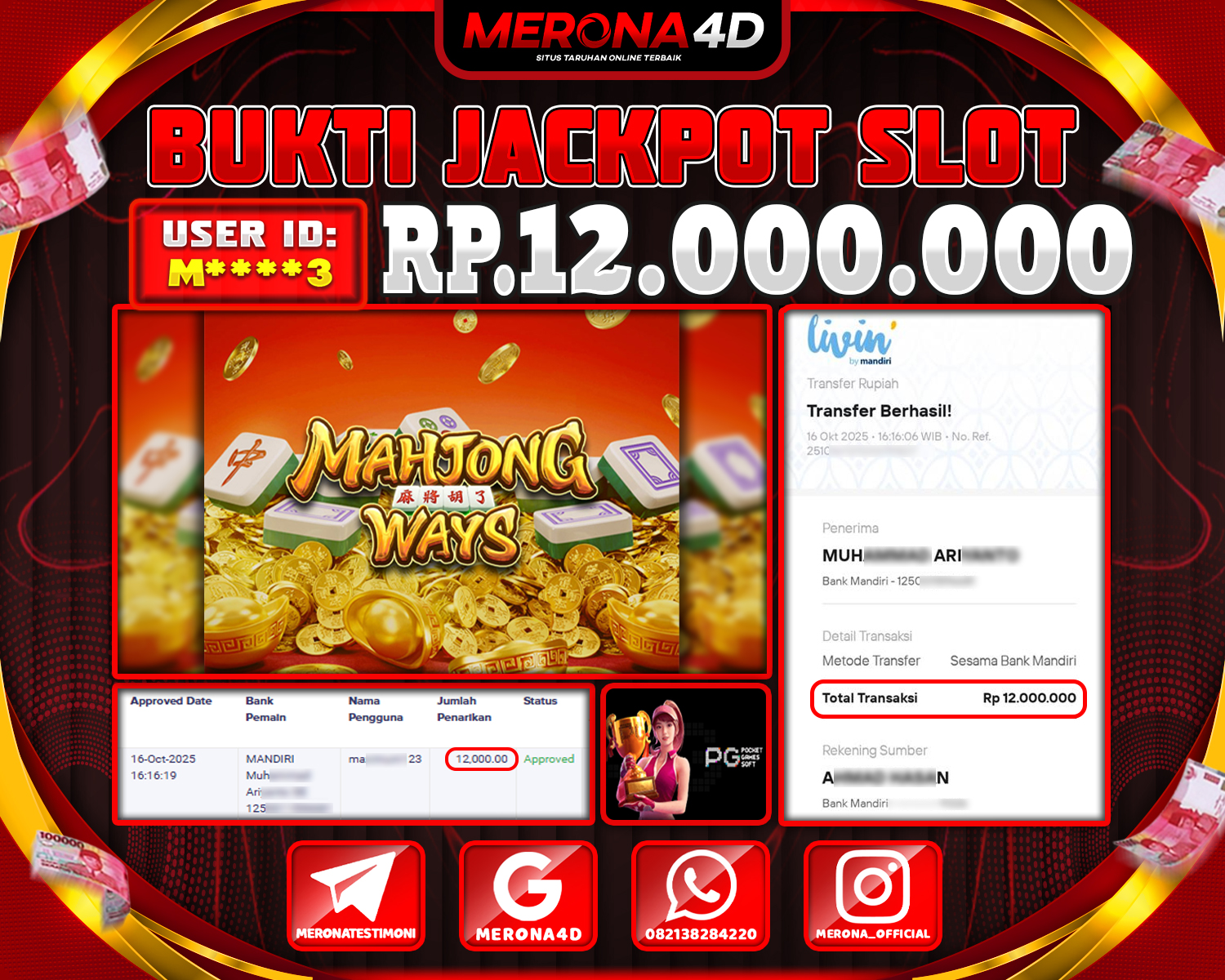 Selamat Kepada Member MERONA4D Mβ­‘οΏ½***οΏ½β­‘3 Telah Jackpot Di MAHJONG WAYS