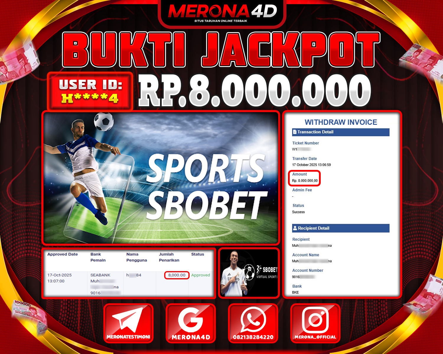 Selamat Kepada Member MERONA4D Hβ­‘οΏ½***οΏ½β­‘4 Telah Jackpot Di SBOVIRTUALGAMES