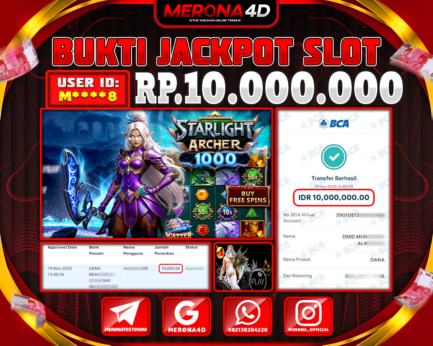 Selamat Kepada Member MERONA4D N****8 Telah Jackpot Di STARLIGHT ARCHER 1000