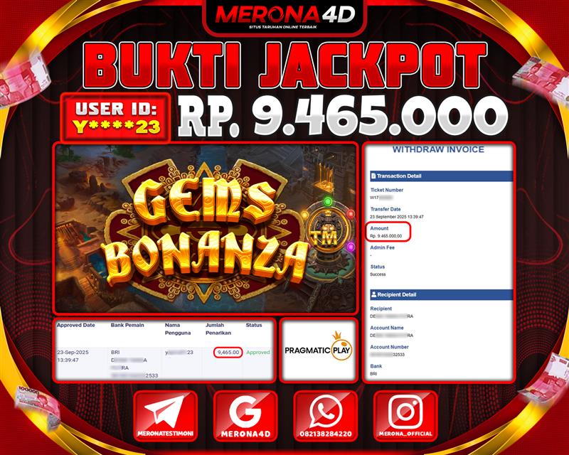 Selamat Kepada Member MERONA4D Y*****23 Telah Jackpot Di GEMS BONANZA