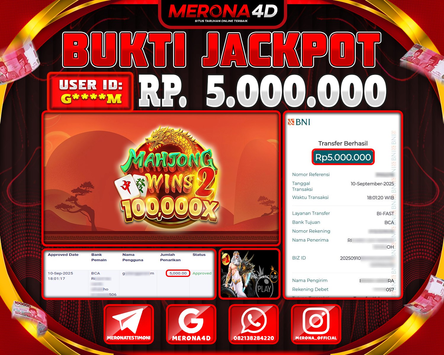 Selamat Kepada Member MERONA4D G****M Telah Jackpot Di MAHJONG WINS 2