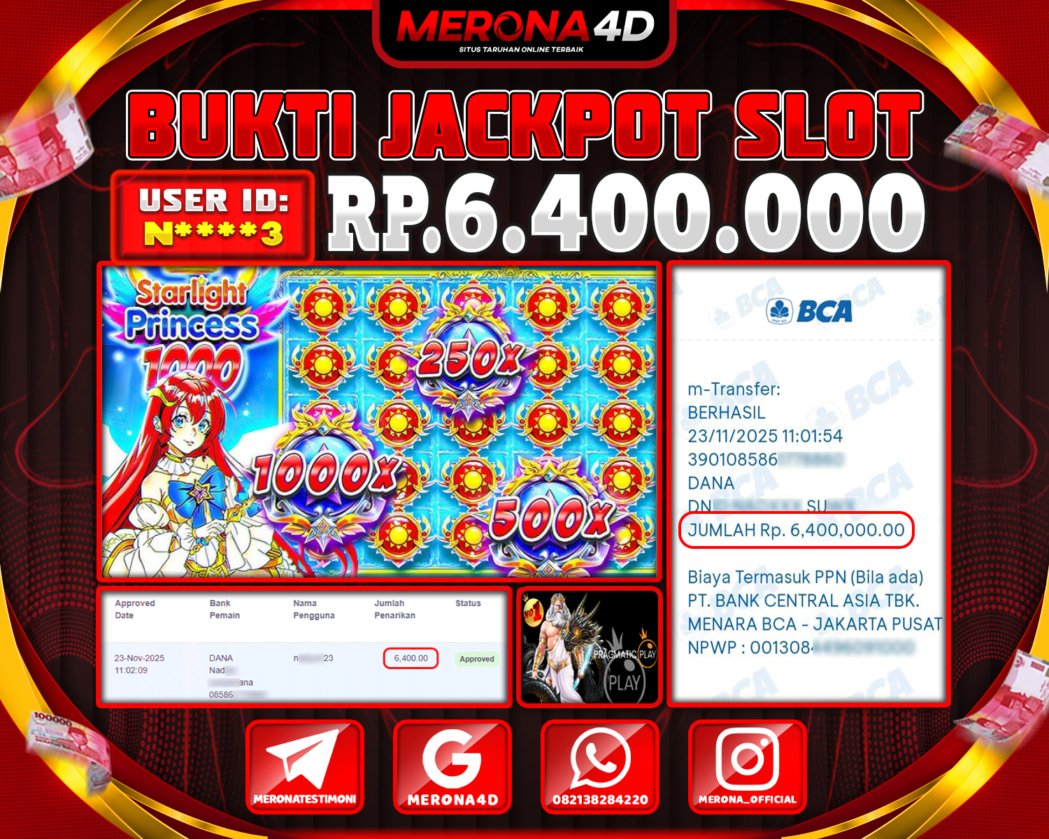 Selamat Kepada Member MERONA4D N****3 Telah Jackpot Di STARLIGHT PRINCESS 1000