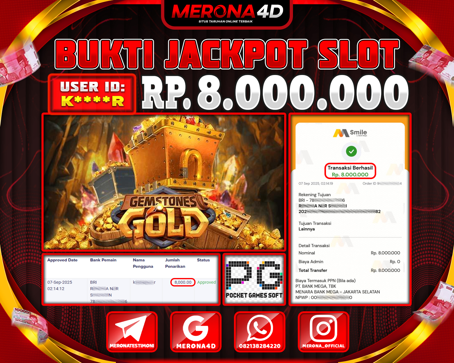 Selamat Kepada Member MERONA4D K****R Telah Jackpot Di GEMSTONES GOLD