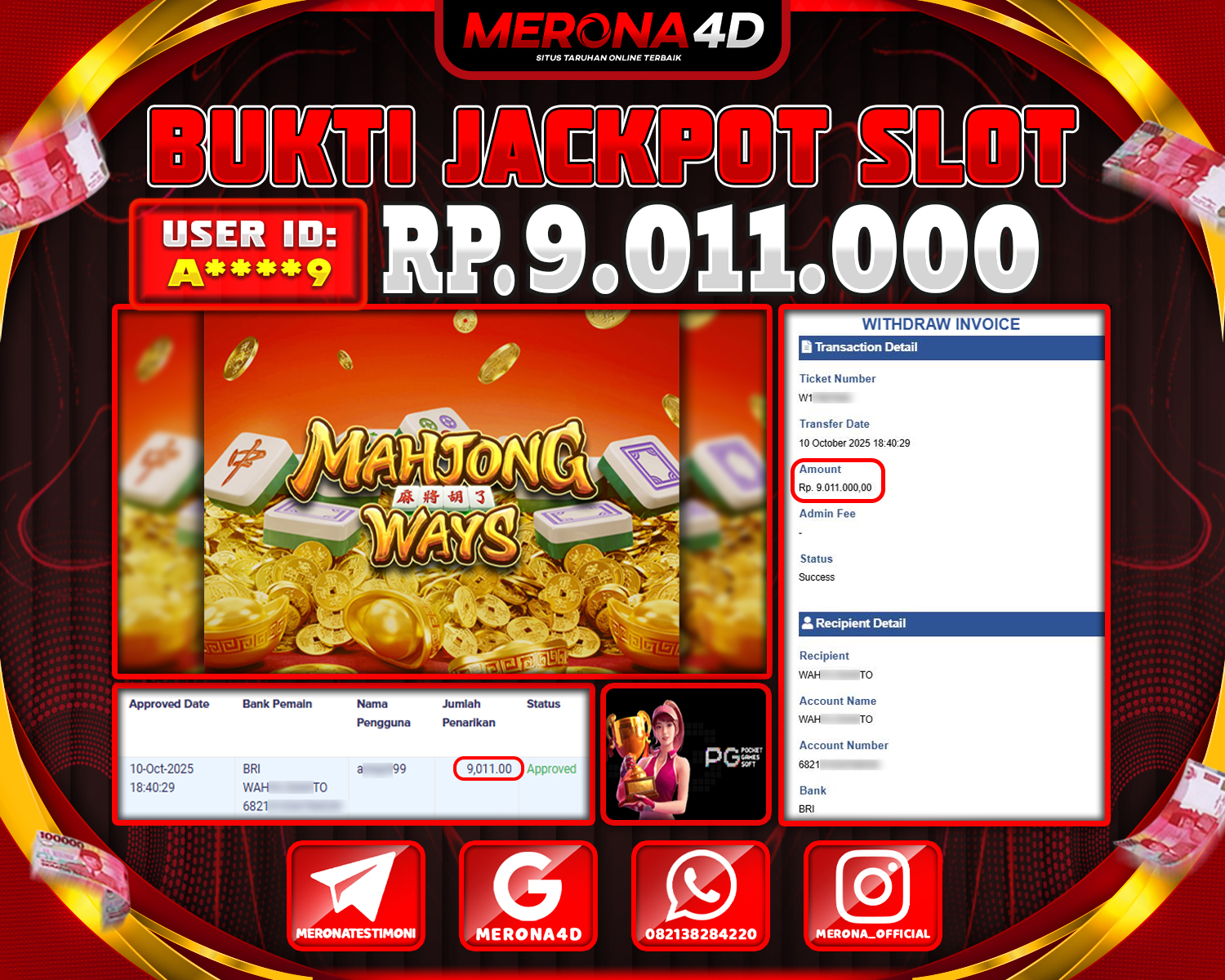 Selamat Kepada Member MERONA4D Aβ­‘οΏ½***οΏ½β­‘9 Telah Jackpot Di MAHJONG WAYS