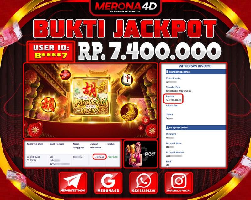 Selamat Kepada Member MERONA4D Bβ­‘οΏ½***οΏ½β­‘7 Telah Jackpot Di MAHJONG WAYS